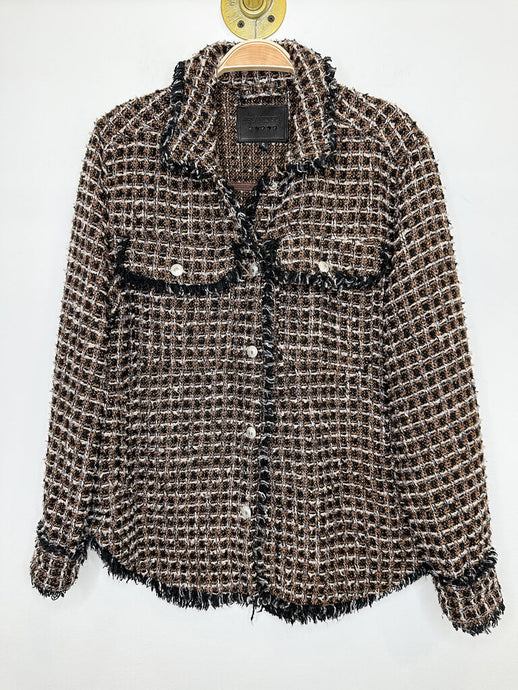 Animal Print Collarless Jacket with Silk + Wool + Gem Accents