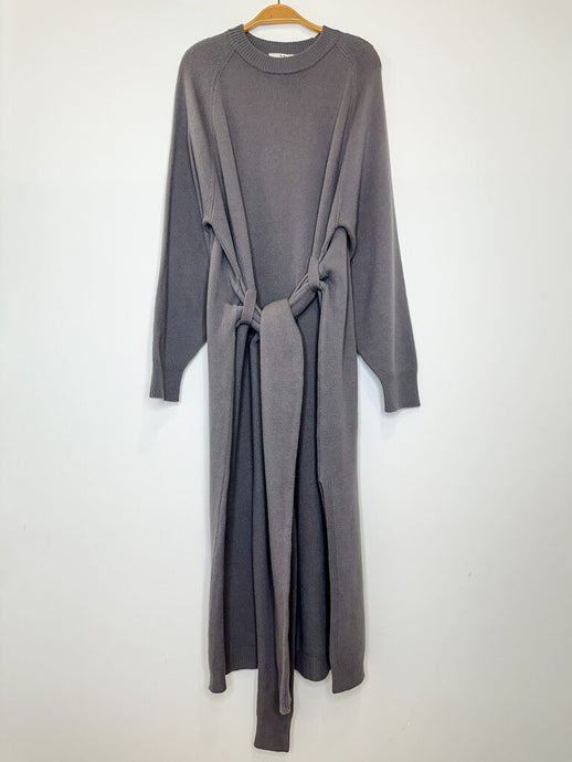 Long Sleeve Dress with Knotted Front + Zipper Accent