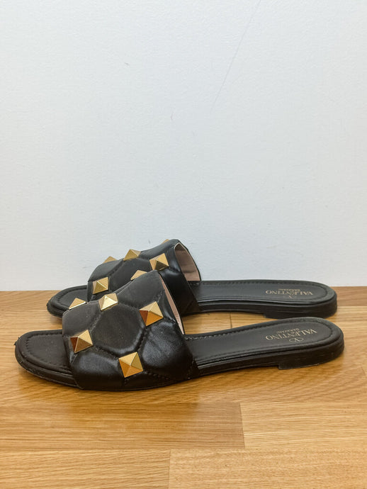 Leather Rockstud Slides