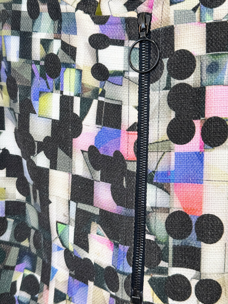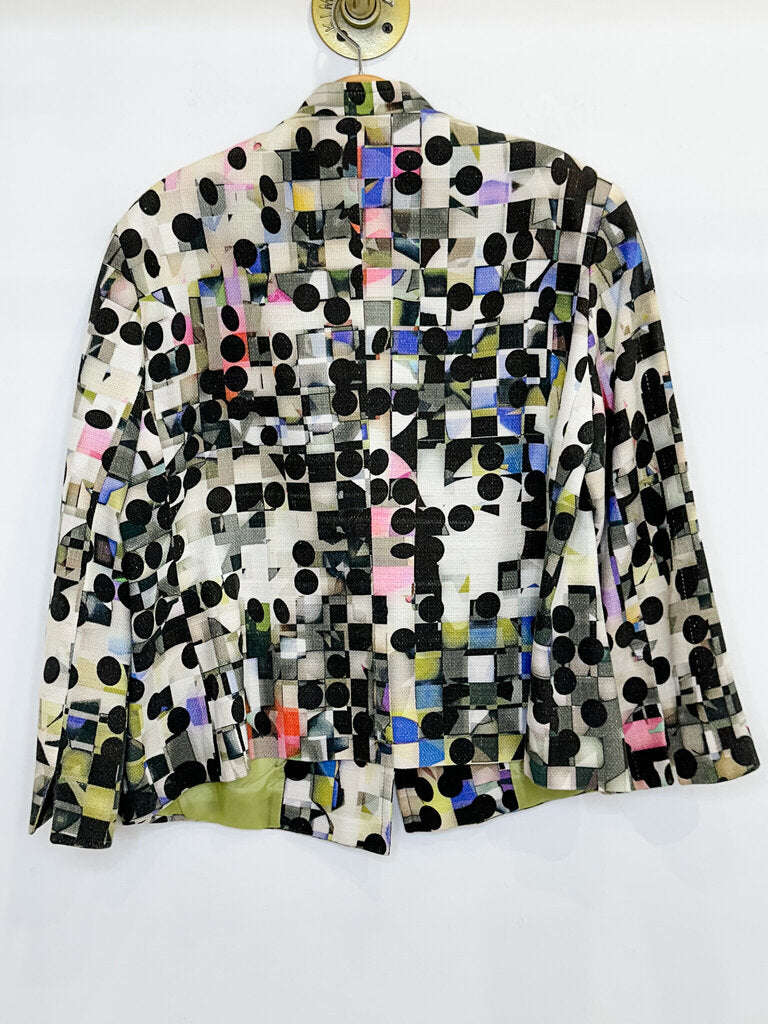 Abstract Dot Print Jacket with Short Off-Center Zip
