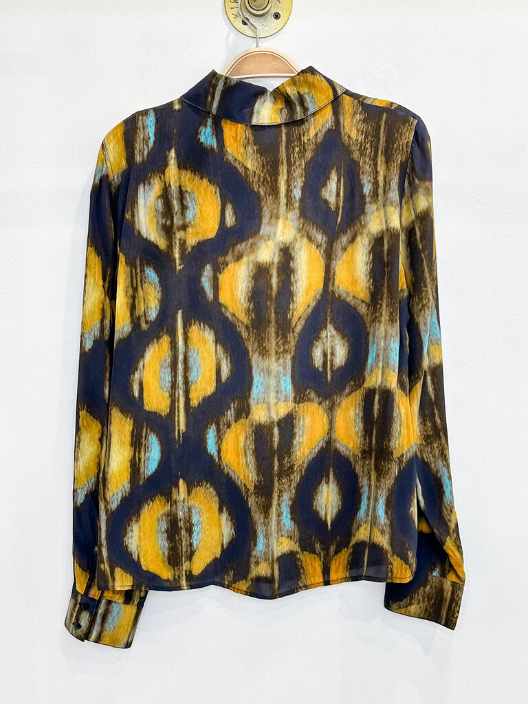Abstract Print Long Sleeve Button Up Shirt, size S (1)