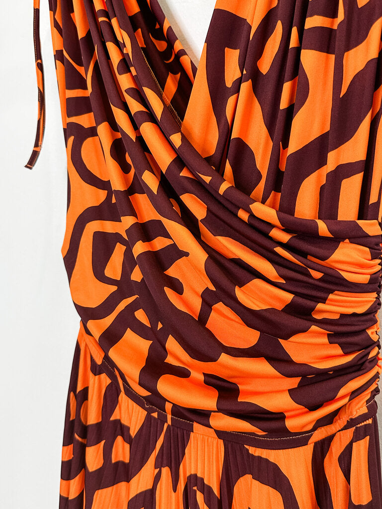 Abstract Print Sleeveless Surplice Midi Dress with Knife Pleat Skirt (orig. ~$400)