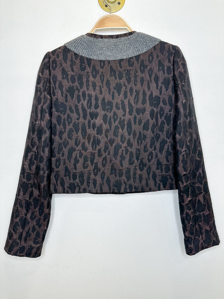 Animal Print Collarless Jacket with Silk + Wool + Gem Accents, size XS