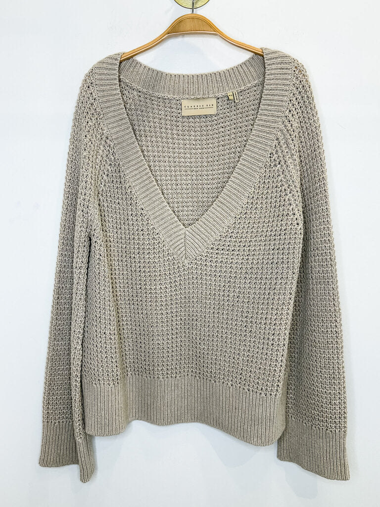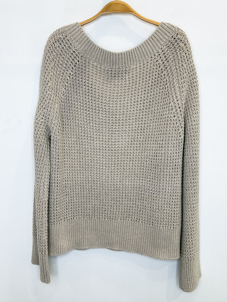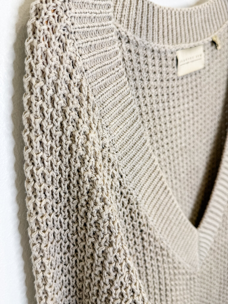 Brigitte Linen-Cotton Blend Deep V Sweater (orig. $295), size XL