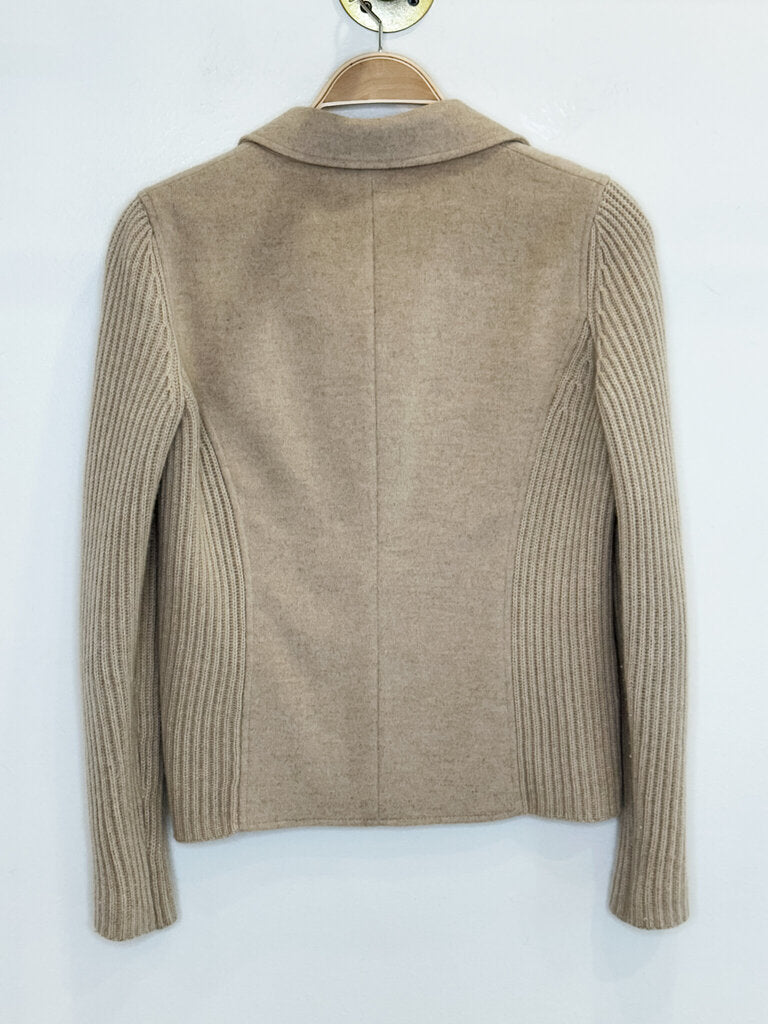 Cashmere Blazer with Ribbed Knit Sleeves, size S