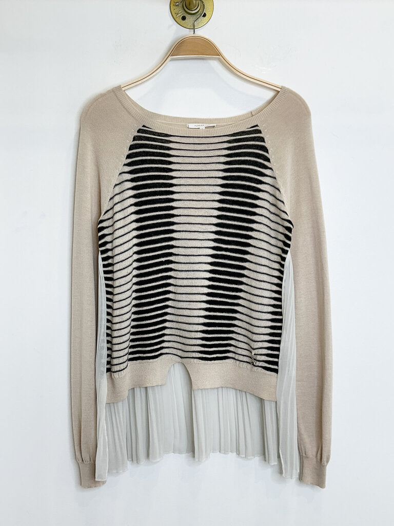 Cashmere-Silk-Wool Striped Sweater with Knife Pleat Back, size S