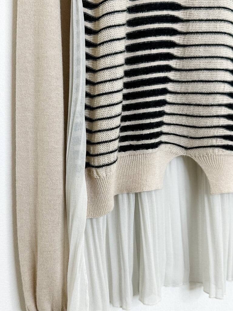 Cashmere-Silk-Wool Striped Sweater with Knife Pleat Back