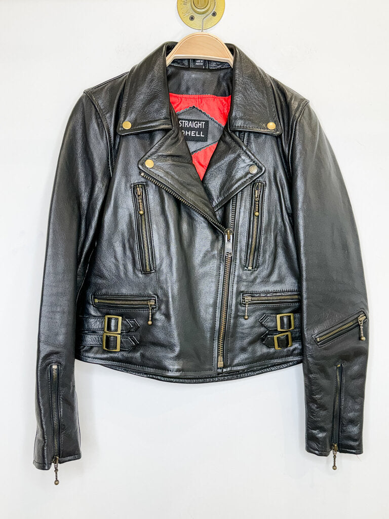 Defector Insulated Leather Moto Jacket (orig. $395), size S