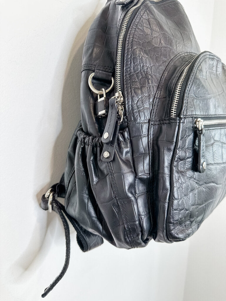 • Load image into Gallery viewer, Embossed Leather Backpack with Silver Hardware (orig. ~$370)