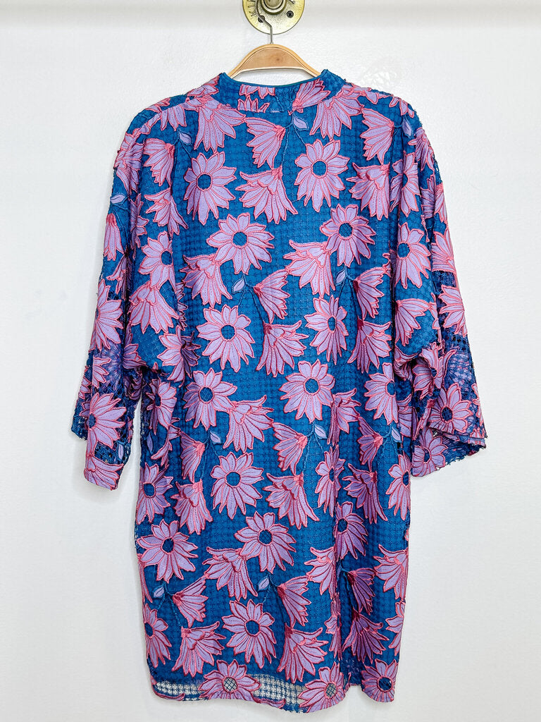 Embroidered Floral Long Sleeve Mini Caftan Dress (orig. $168), size M