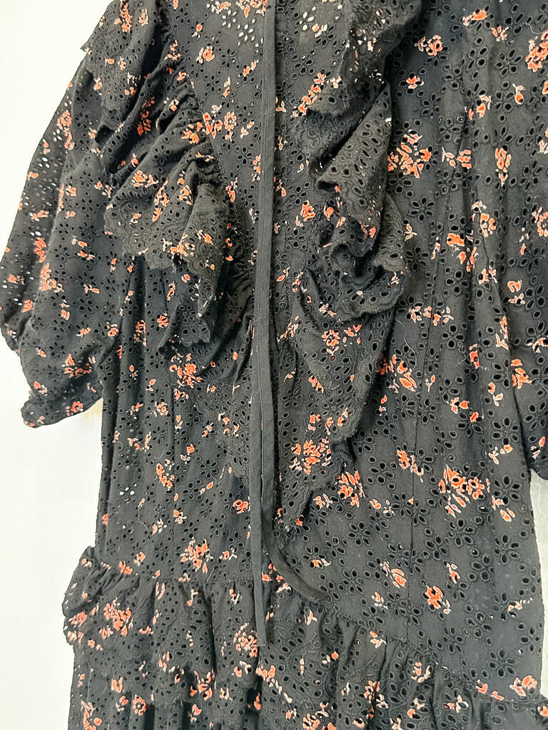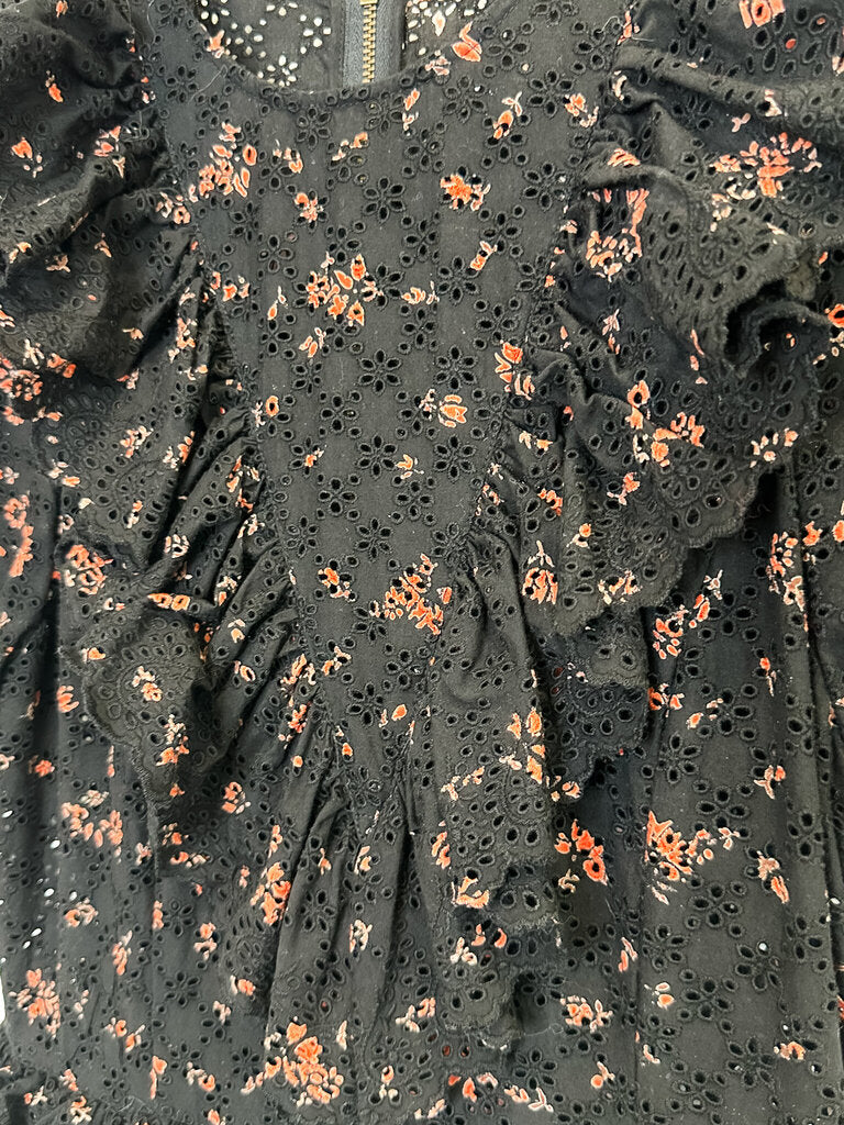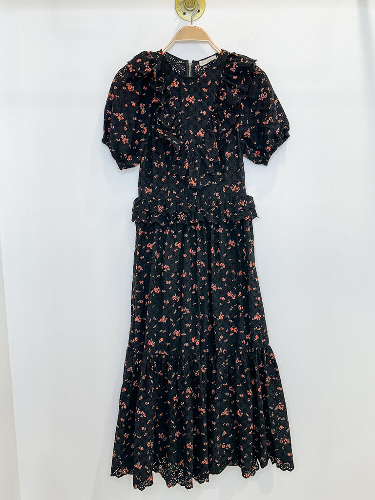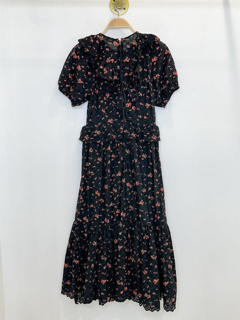 Floral Eyelet Cotton Midi Dress with Ruffles, size 2