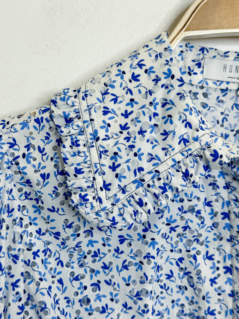 Floral Eyelet Long Sleeve Button Up Shirt with Large Collar (orig. ~$385), size M