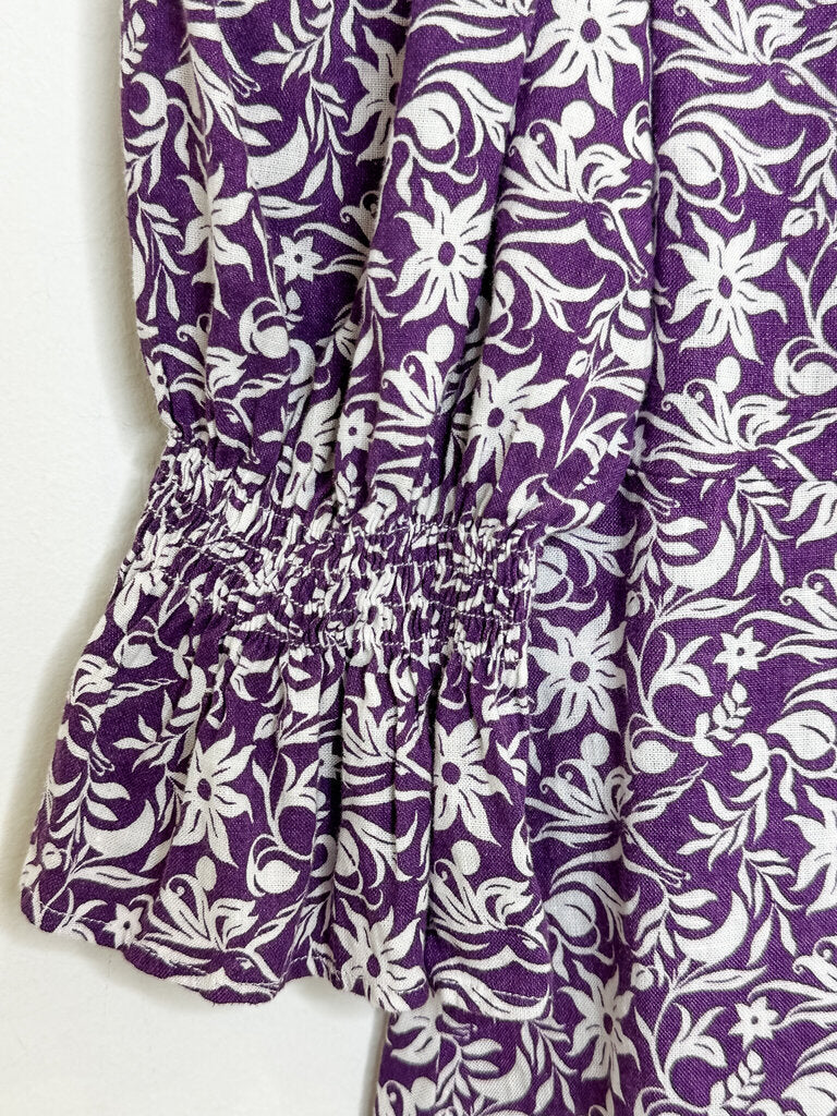 Floral Linen-Blend Half Sleeve Mini Dress, size XS (36)