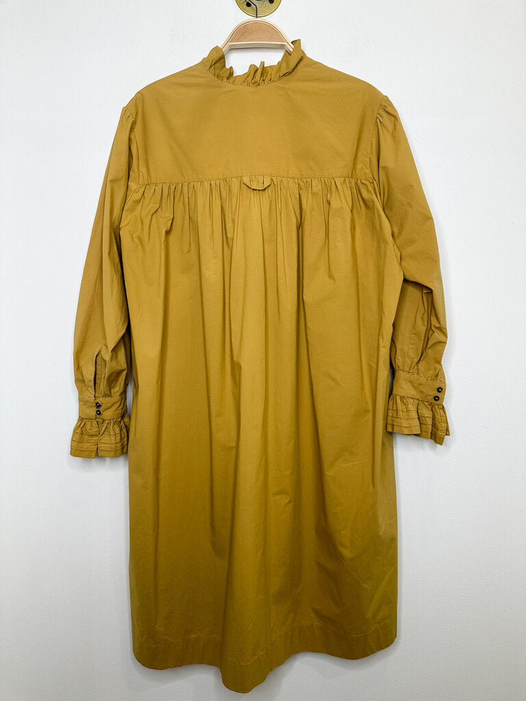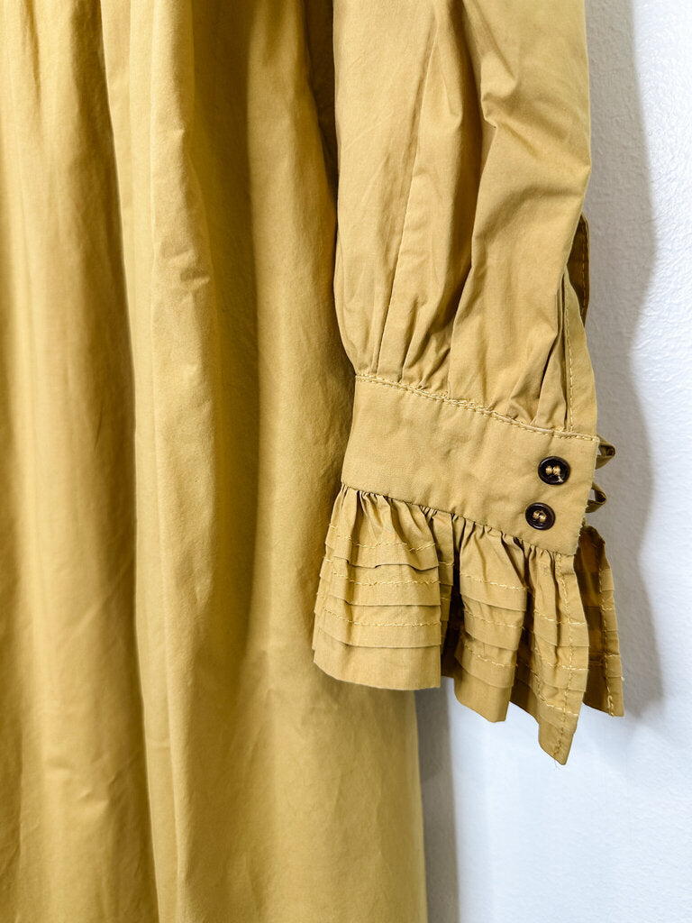 Half Button Long Sleeve Shirt Dress with Ruffled Trim, size S