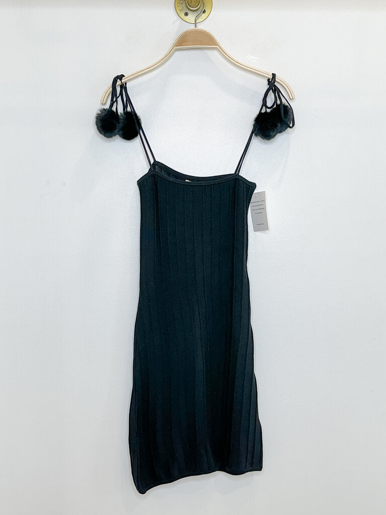 Knit Pom Pom Strap Mini Dress (NWT), size S