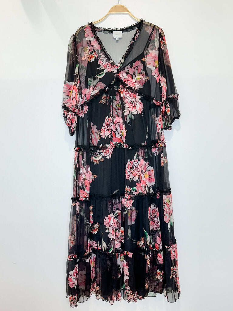 Lizzy Silk Ruffle Maxi Dress (orig. $490), size L