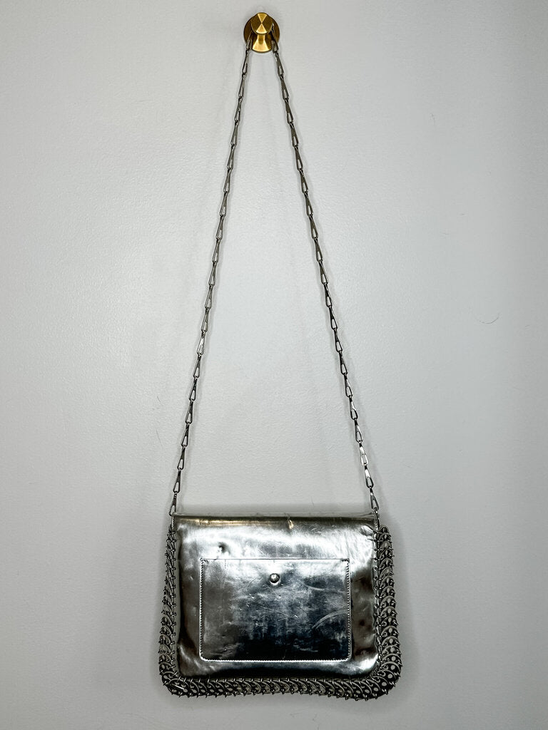 • Load image into Gallery viewer, Metallic Leather + Silver Disc Shoulder Bag