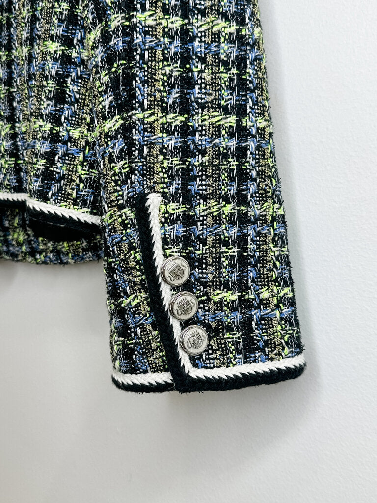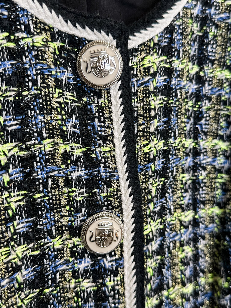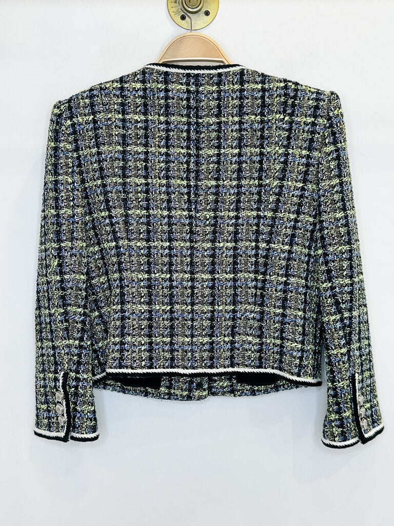 • Load image into Gallery viewer, Metallic Tweed Collarless Jacket