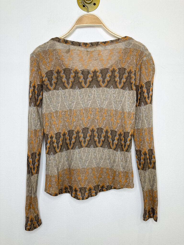Ornate Striped Scoop Neck Long Sleeve Top, size S