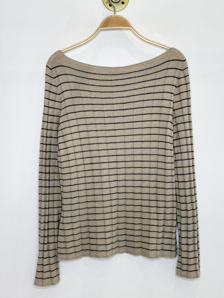 Pleated + Striped Cashmere Boatneck Sweater, size L (IT 46)