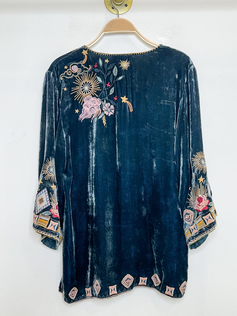 Selah Velvet Kimono Sleeve Embroidered Top, size M