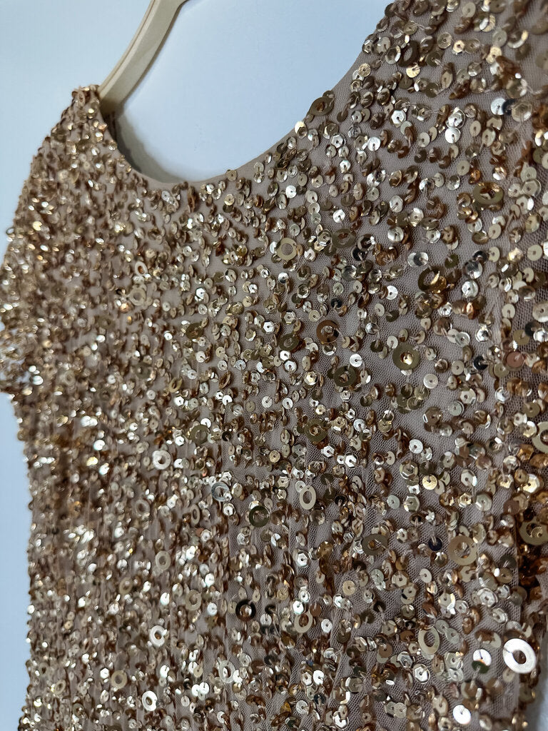 Sequin Cap Sleeve Gown with Small Train, size 6