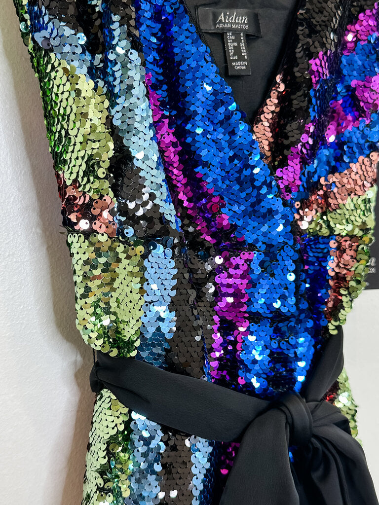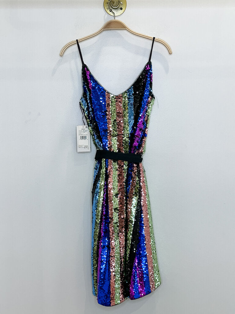 Sequin Striped Spaghetti Strip Dress (NWT, orig. $330), size 4