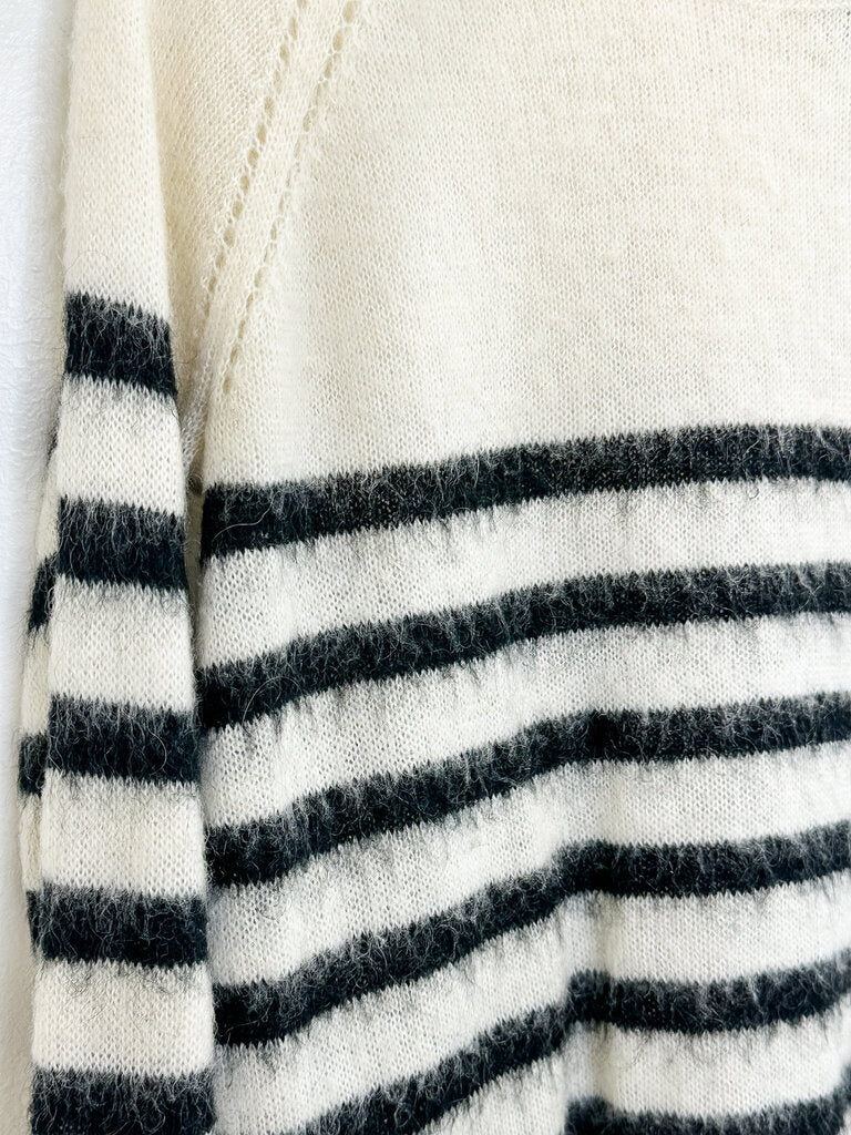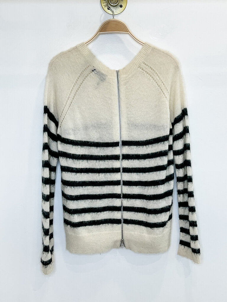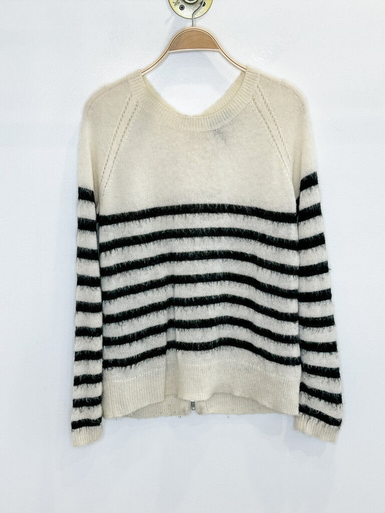 Striped Mohair-Blend Crewneck Back Zip Sweater, size M