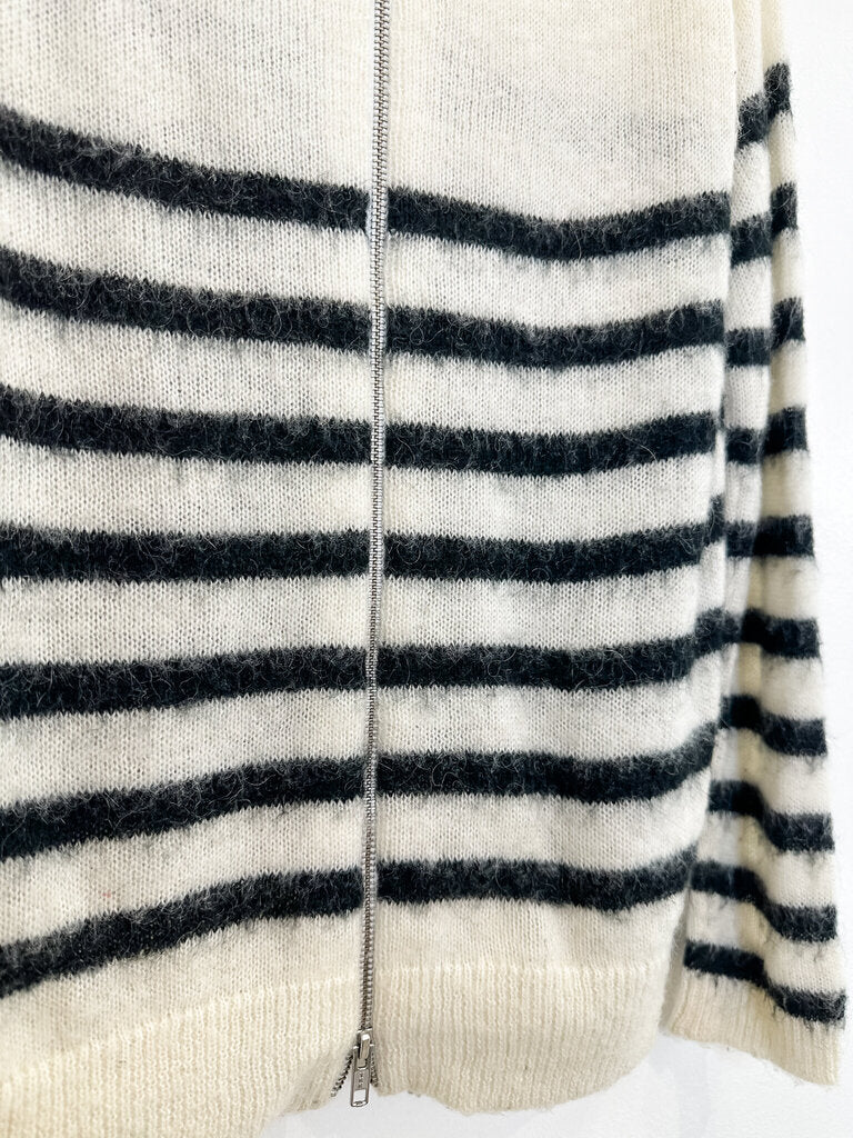• Load image into Gallery viewer, Striped Mohair-Blend Crewneck Back Zip Sweater