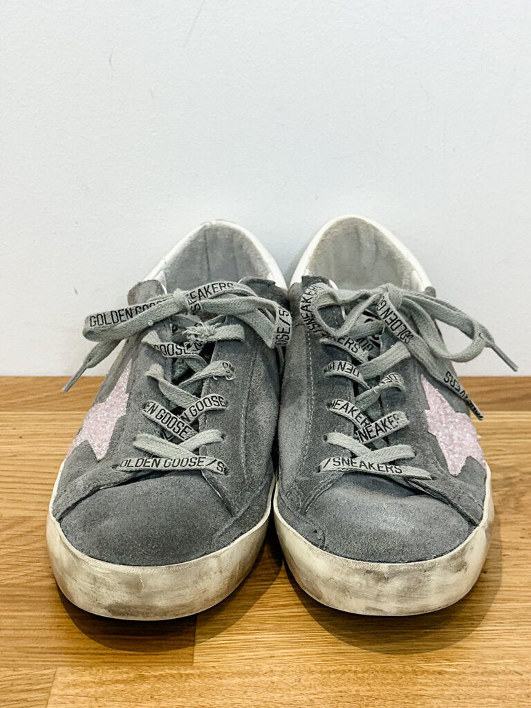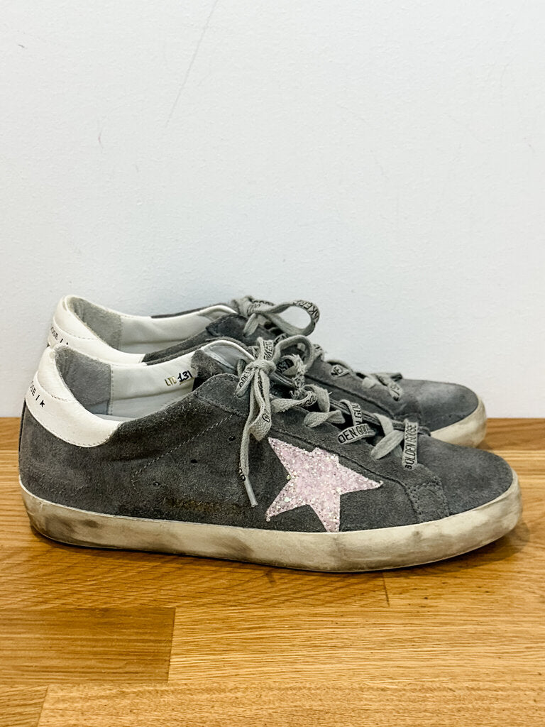 Suede + Glitter Star Lace Up Sneakers, size 8