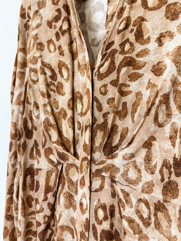The Icon Animal Print Long Sleeve Button Up Midi Shirt Dress (NWT, orig. $268)