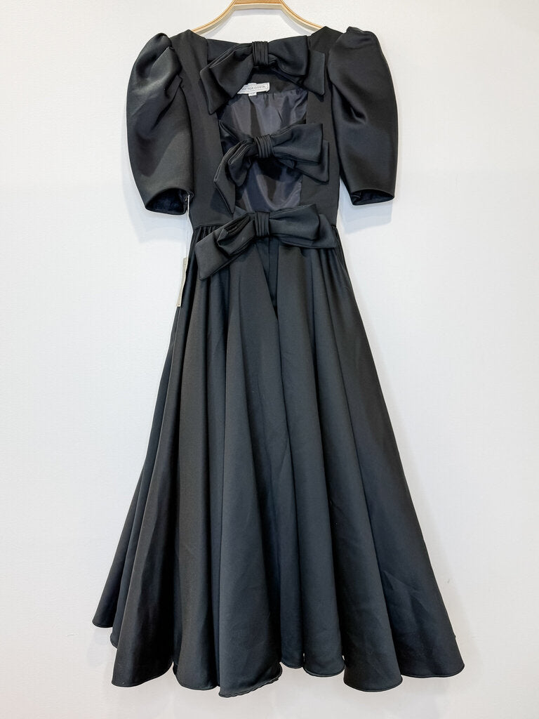 Vintage 80s Short Sleeve Midi Dress with Bows on Open Back (NWT)