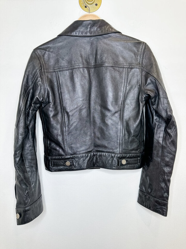 • Load image into Gallery viewer, Vintage Button Front Leather Jacket