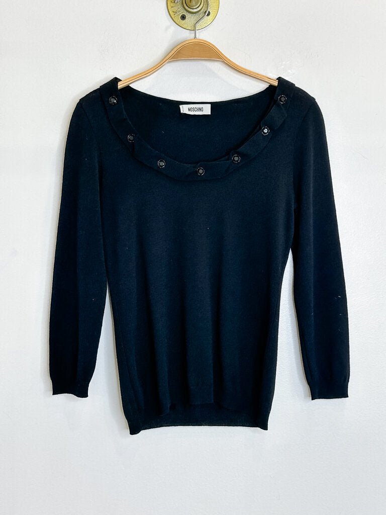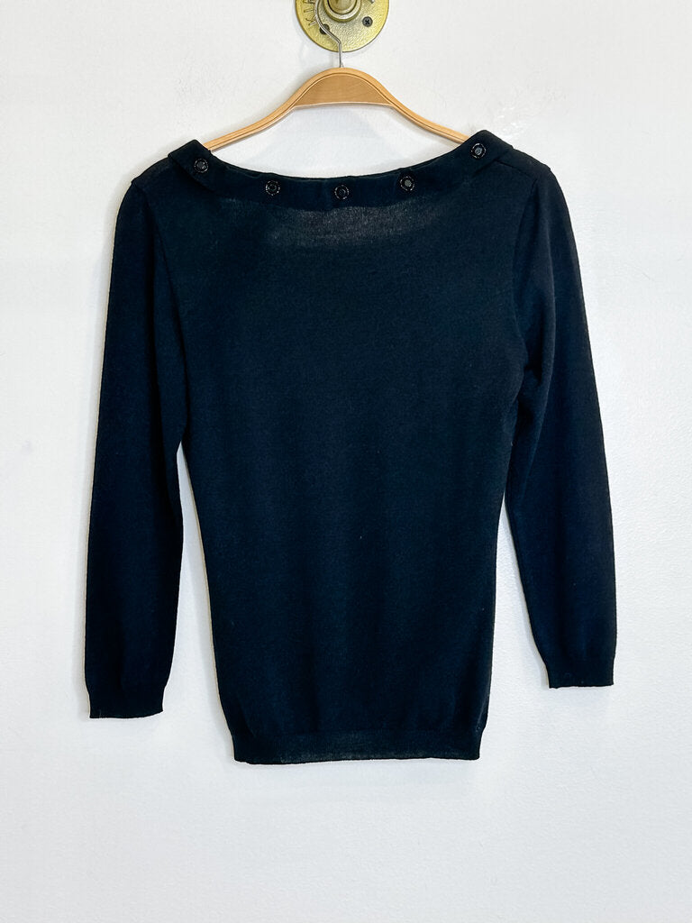 Wool Blend 3/4 Sleeve Knit Scoop Neck Top with Embellished Collar, size S