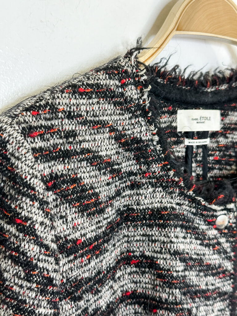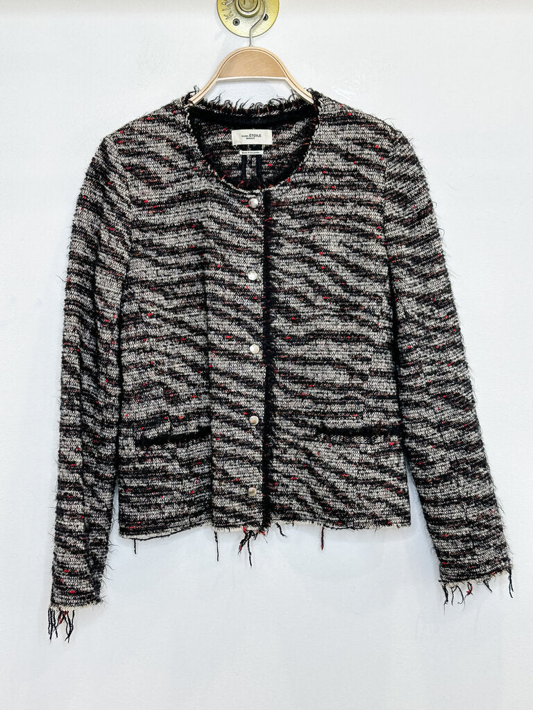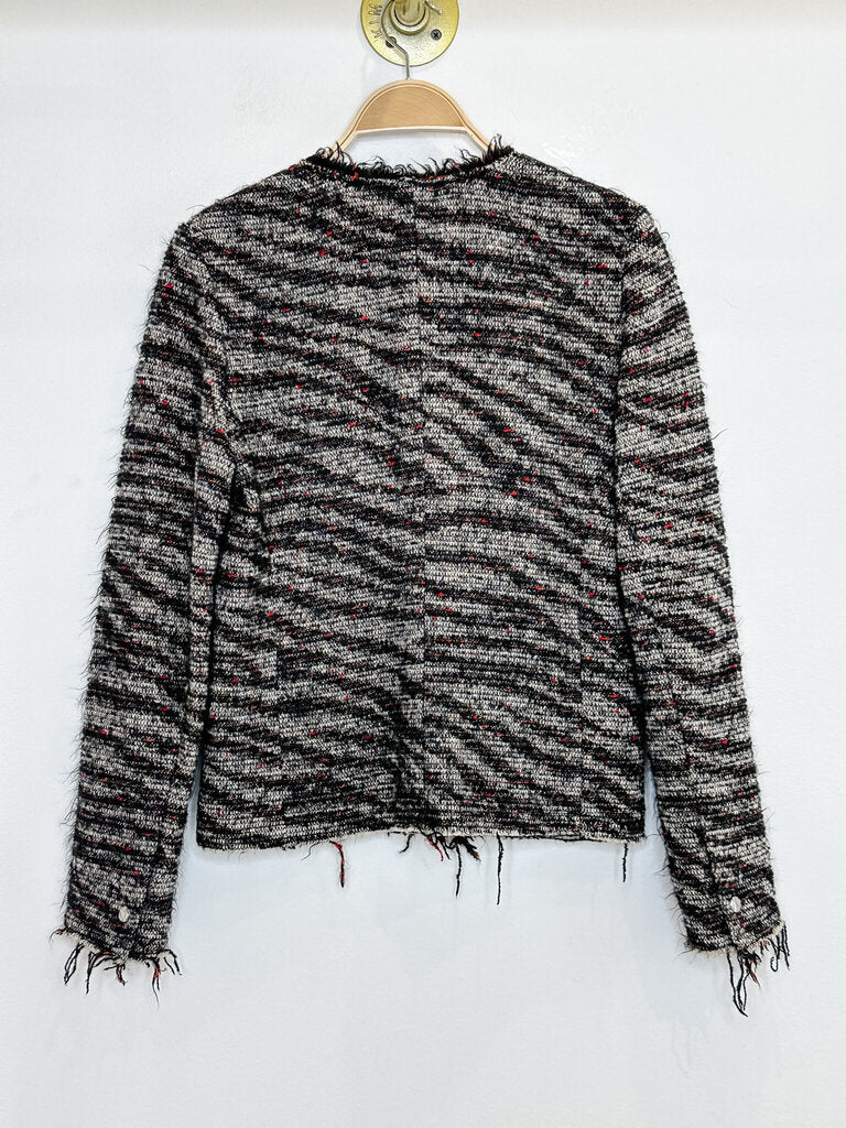 Wool-Blend Tweed Snap Up Jacket with Raw Hems, size S (FR 38)