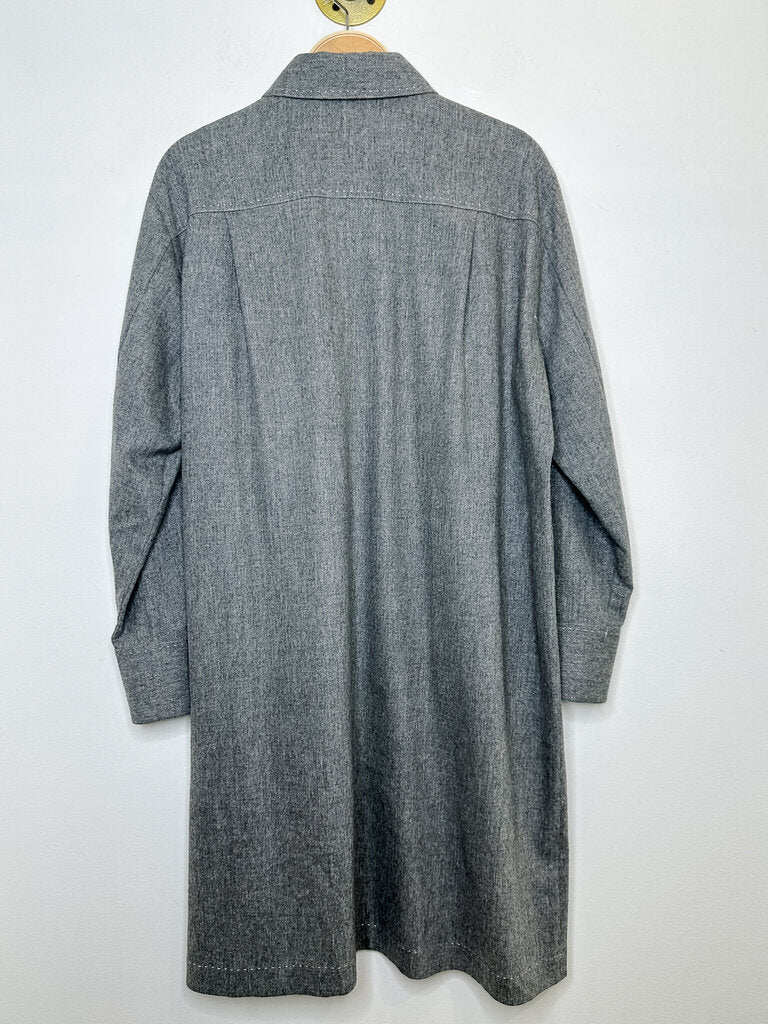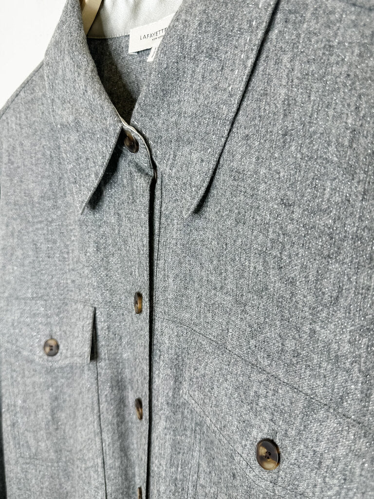 Wool-Cashmere Long Sleeve Button Up Shirt Dress with Metallic Threads